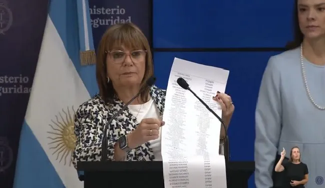 En conferencia de prensa, Bullrich dijo: «Para nosotros esto es sumamente importante, porque ningún violento, nadie que en las canchas argentinas haya cometido un delito o haya extorsionado va a poder entrar a este Mundial de fútbol que se juega en Estados Unidos».